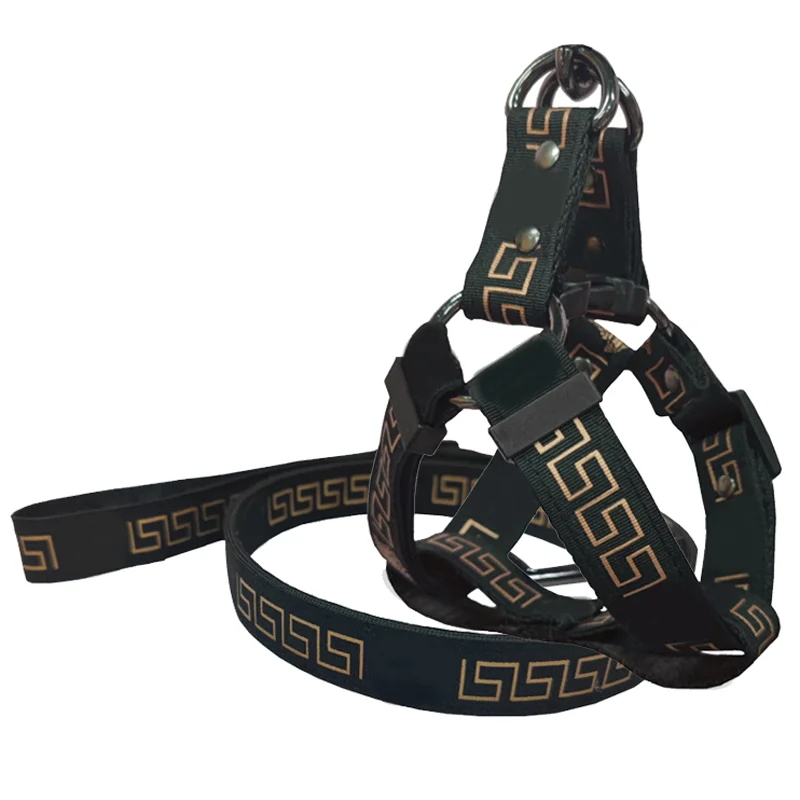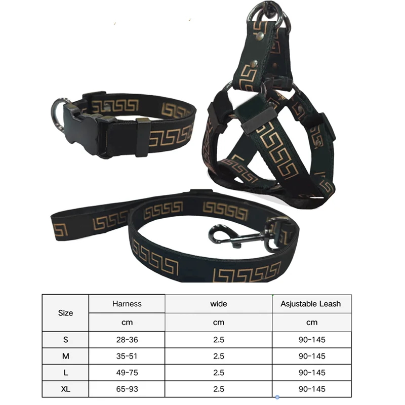 3 Pack/Set Dog Harness and Leash Collar,Retro Geometric Pattern Pet Vest Harness with Adjustable Leash,Durable Dog Collar Set for Small Medium Large Dogs