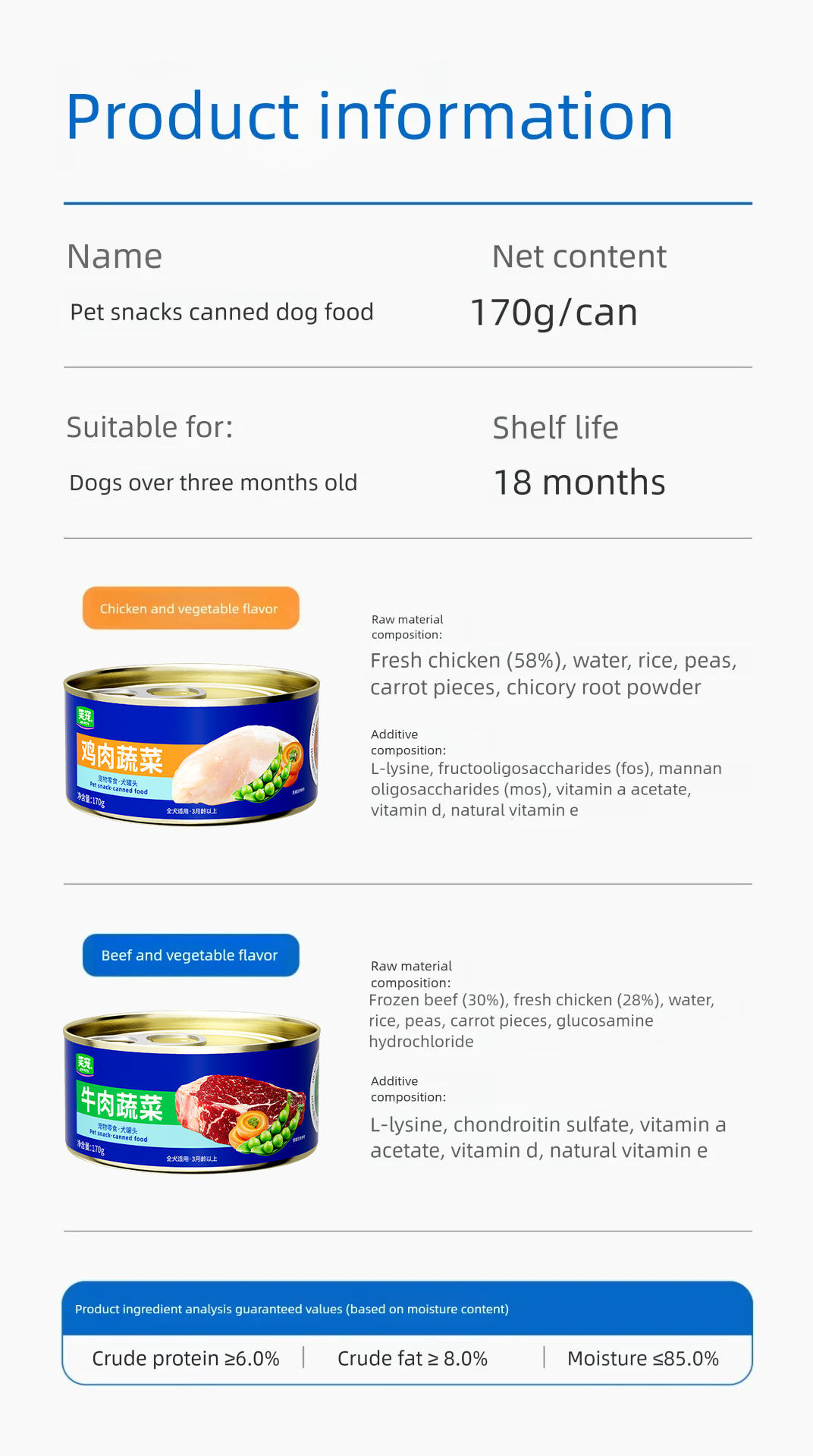Canned dog full price dog mi wet food staple food canned chicken salmon chicken breast 170g