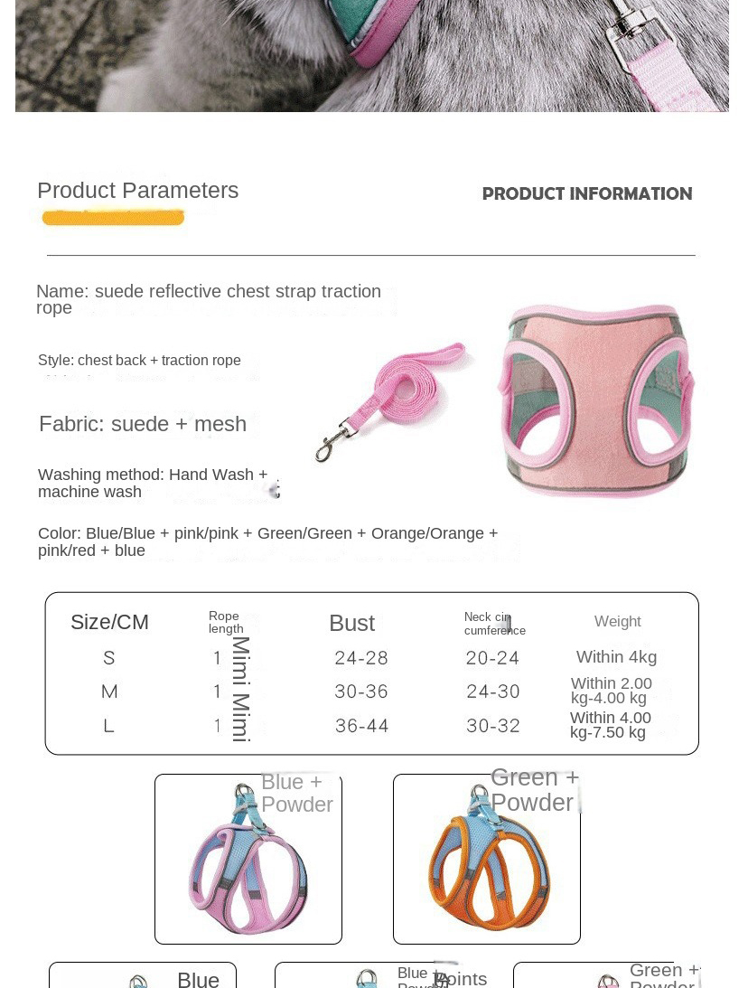 Cat Traction Rope Slide Cat Rope Cat Strap Vest-style Chest-back Anti-break-free Cat Special Rabbit Dog for Going Out
