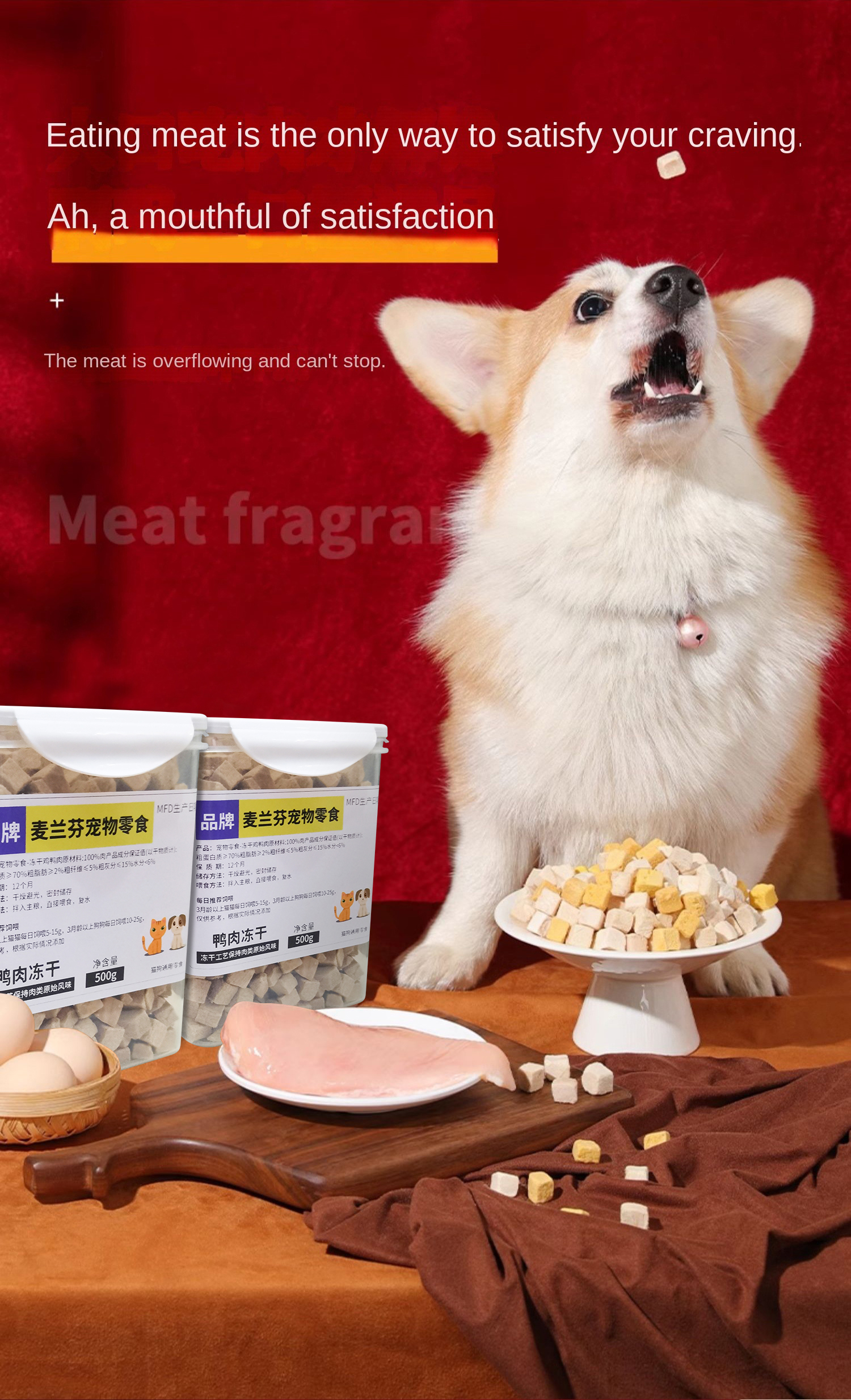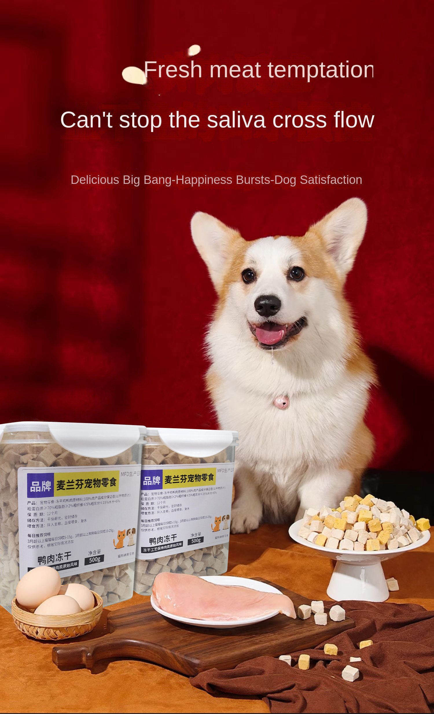 Pet freeze-dried meat snacks chicken beef duck quail chicken small breast 500g dog cat snacks