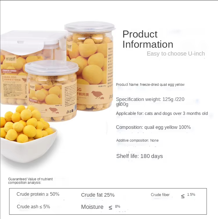Pet Freeze-Dried Quail Egg yolk, Cat and Dog Hair Supplement, lecithin, lysine, Whole