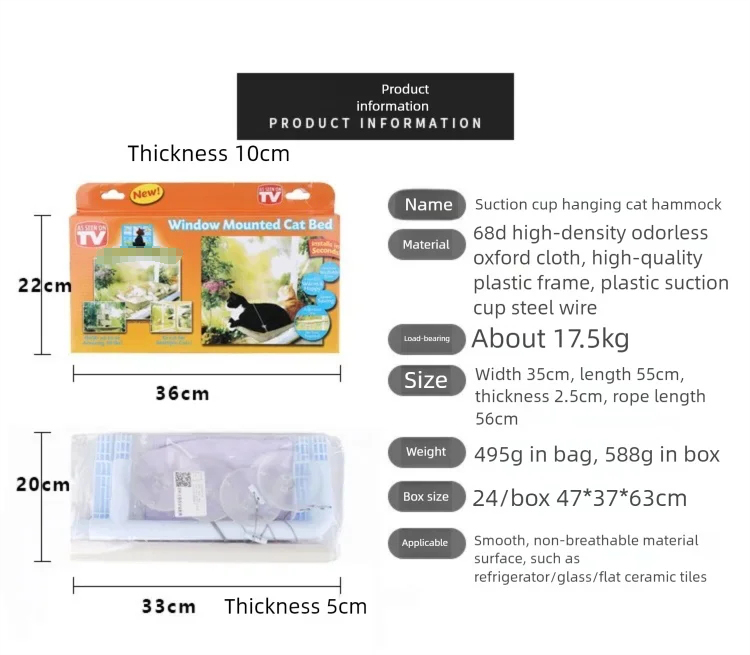 Pet Supplies Suction-Cup Cat Hammock Four-Season Universal Cat Hammock Detachable and Washable Cat Bed for Fall and Winter