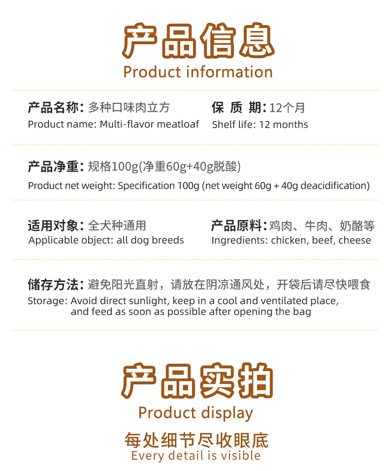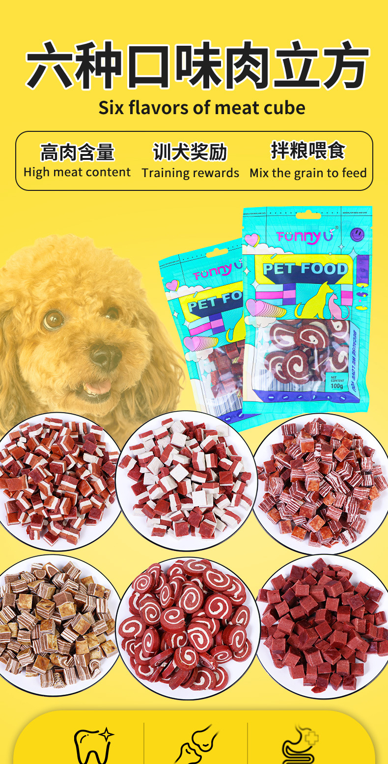 Pet Treats Beef Granules Meat Cubes Beef & Cheese Flavor Snacks 100g No Additives
