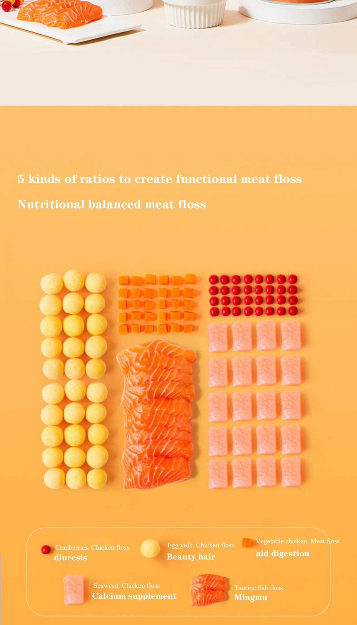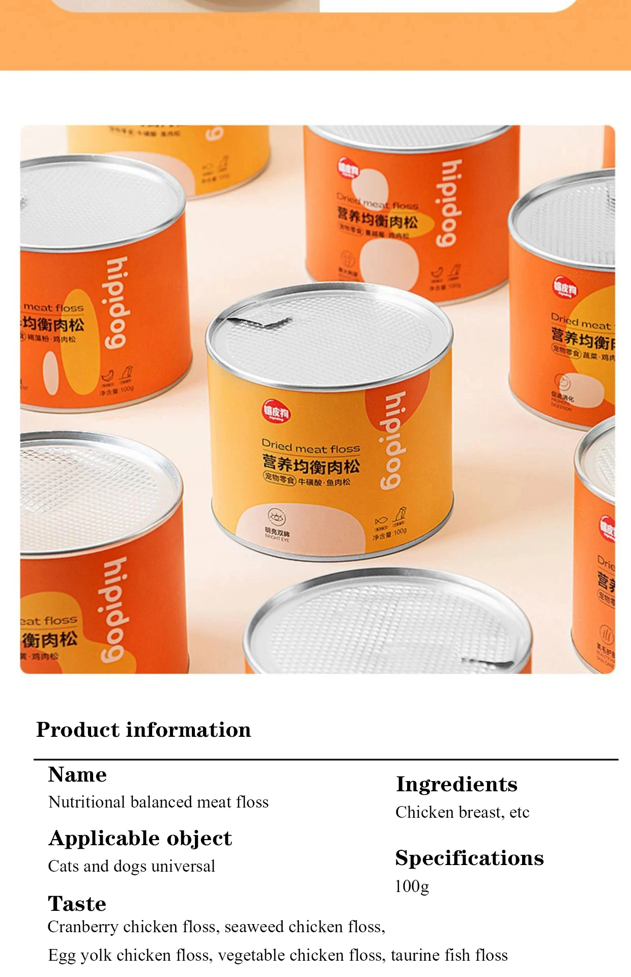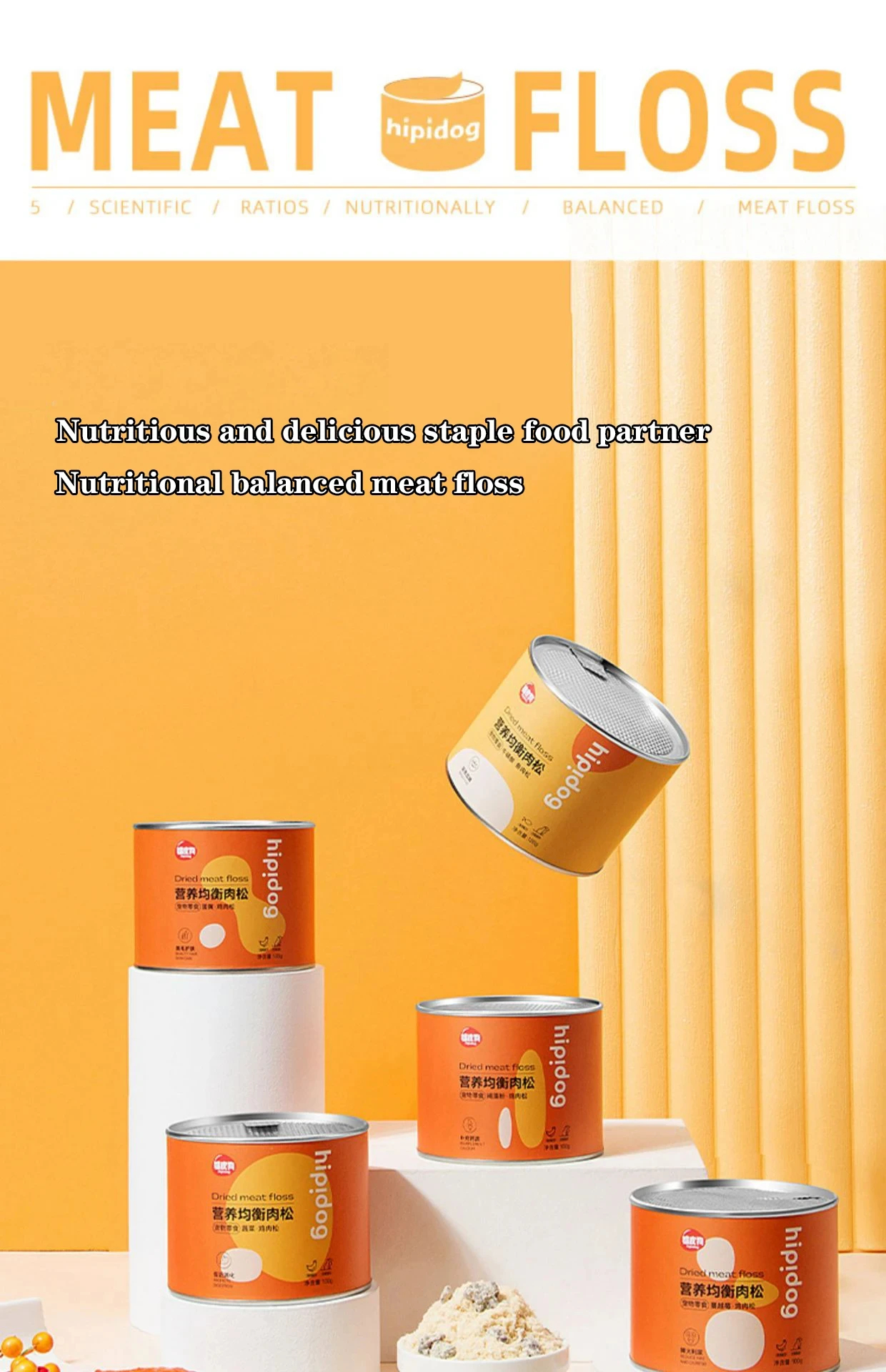Snack pet meat floss mixed with food chicken powder egg yolk cat puppy dog food companion freeze-dried chicken floss